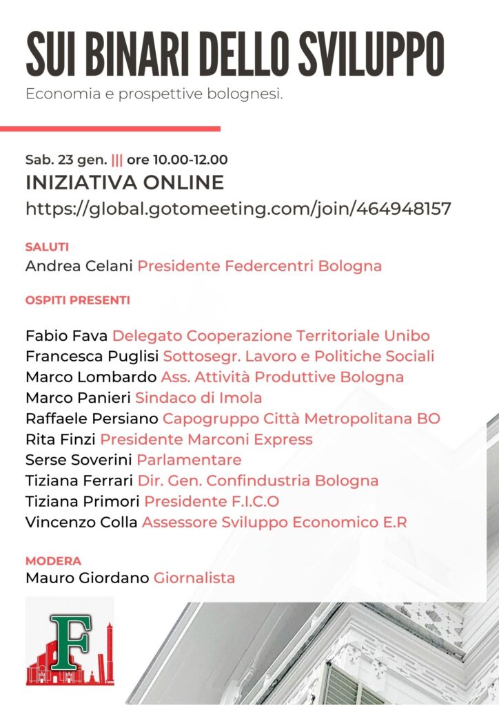 Bologna, 20/01/2021 Dopo il successo degli eventi precedenti targati Federcentri, sabato 23 gennaio dalle 10, in diretta su GoToMeeting (accessibile al link https://global.gotomeeting.com/join/464948157) parleremo di sviluppoeconomico in ottica metropolitana.«Dopo aver affrontato temi importanti per la nostra città, dal bilancio, all’utilizzo degli spazi comuni, al welfare, ai fondi del Recovery Fund, sempre con relatori autorevoli, anche […]